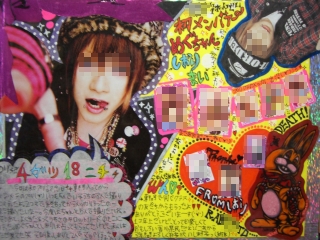 †使ったもの(´Å`)† 基本…はさみ・のり・両面テープ 切り抜き…SHOXX 4月号・SEXPOTパンフ(?) 背景…画用紙(黒・黄色)・ホログラム折り紙 ペン…Signo0.38(紫・ピンク・黒・橙)・SARASA0.7黒 ポスカ極細(ラメ紫・白・赤・水色・黄緑・オレンジ・緑) ポスティラ(ピンク)・修正ペン・油性ペン +α…トレーシングペーパー・折り紙(透明・メタリック)・シール ラミネートシート・フライヤー ↓説明若干はしょり気味ですみません(;´Д`)ノシ そして途中の写メなくてすみませぬ・・・。 |